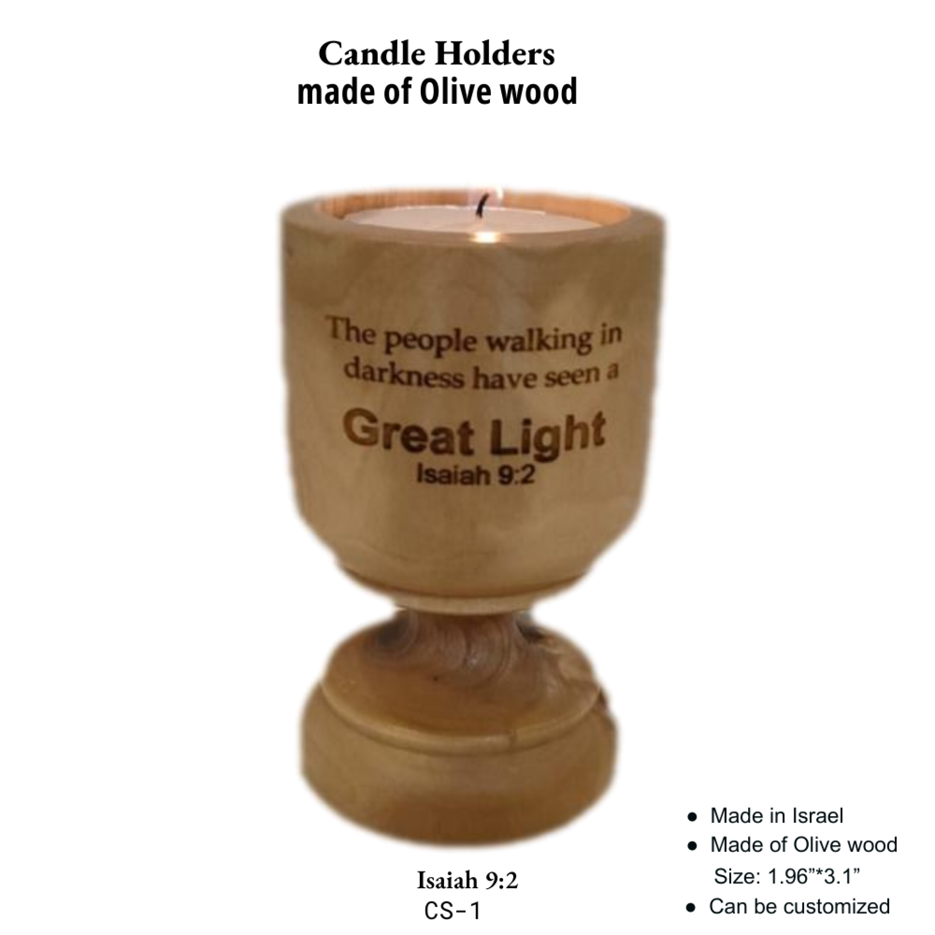 This beautifully crafted Olive Wood Candle Holder is made from genuine olive wood sourced from the Holy Land. Elegantly engraved with the inspiring Bible verse from Isaiah 9:2, “The people walking in darkness have seen a Great Light,” it serves as a meaningful symbol of faith and hope.
