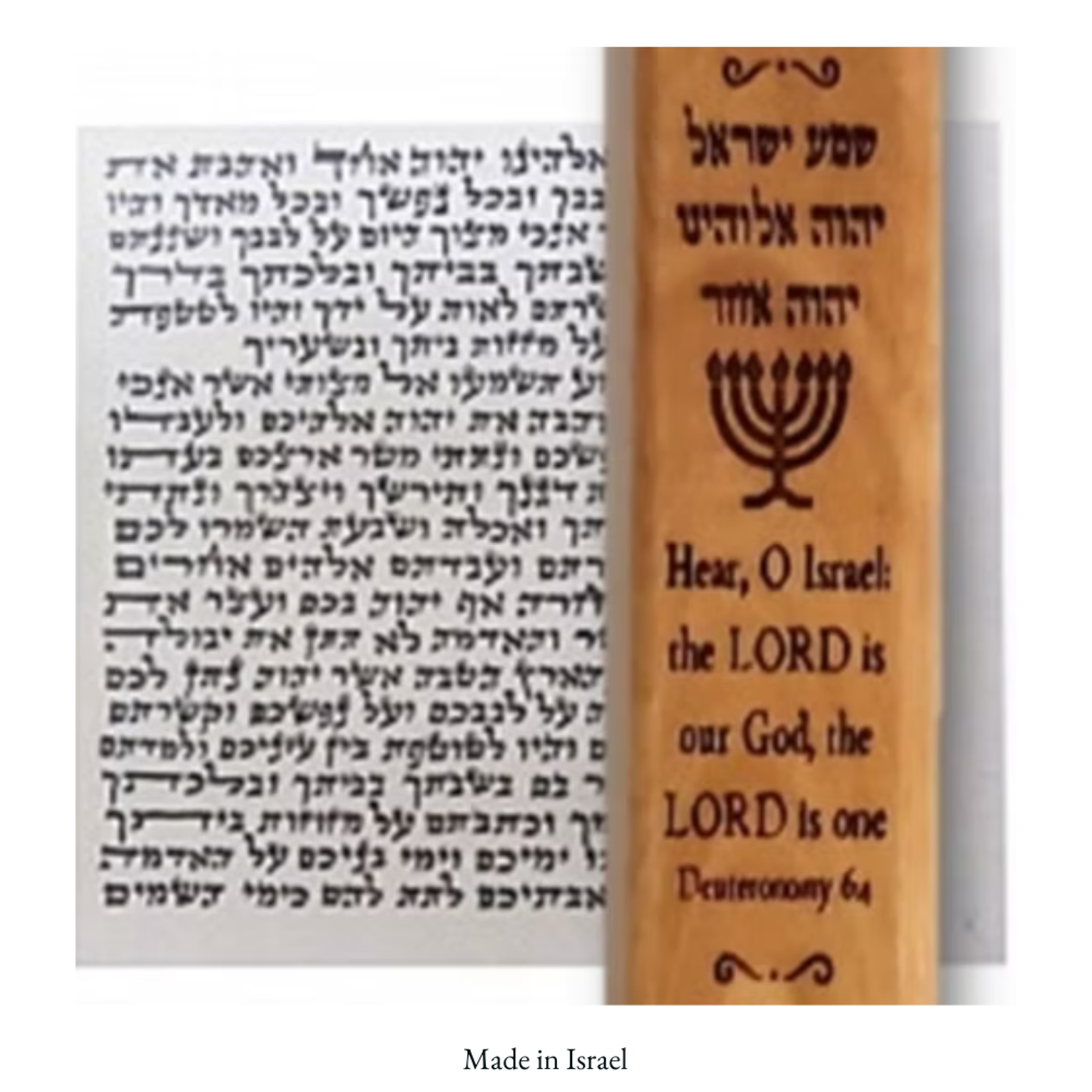 This beautiful Shema Olivewood Mezuzah is a meaningful symbol of Jewish faith and tradition. The Shema prayer, one of the most important prayers in Judaism, declares the belief in one God and is traditionally placed on the doorposts of Jewish homes as a sign of devotion and protection.
